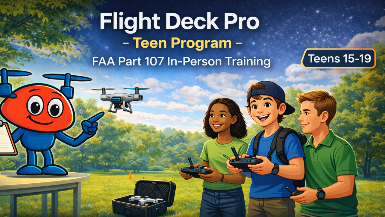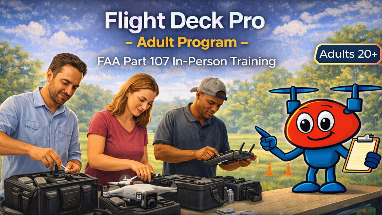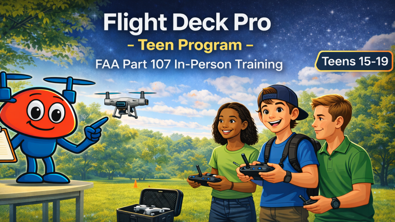 In-person, hands-on drone training designed to prepare adults and teens for FAA certification and real-world flight.